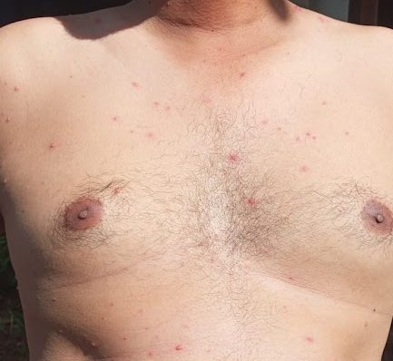 bangun sahur kok badan tetep berasa ngga enak. istri ngeliatin ada bintik kecil di kepala. “disantet kali pi”. yakali ada yang santet.